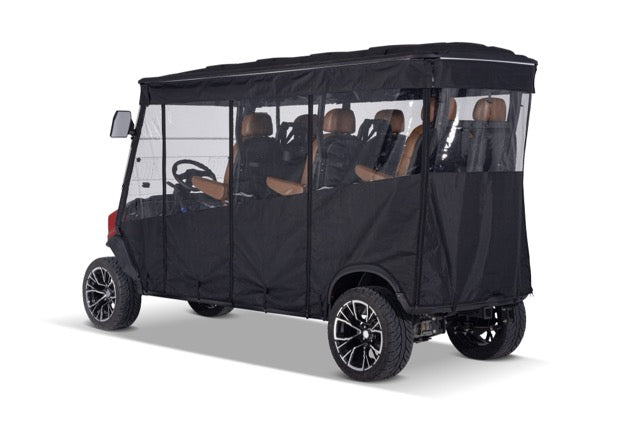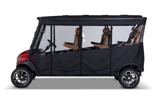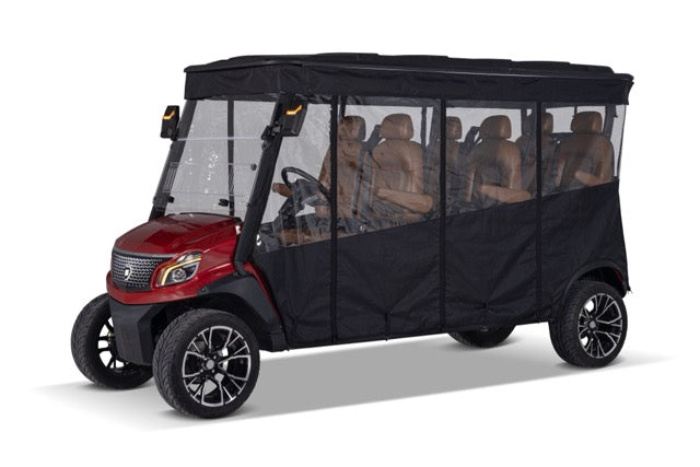 Protect your Solana EV golf cart year-round with our clear-view, roll-up enclosure. Durable, weatherproof, and custom-fit for Model XA 6P electric carts.